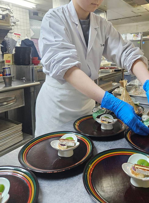調理の仕事は技術の積み重ねが必要で、最初の数ヶ月は覚えることも多く不安になるかもしれません。でも、つるぎ恋月の調理場には気軽に相談できる先輩が多く、上司と部下の壁が少ない、あたたかい職場です。若いうちから大切な仕事を任せてもらえる環境があり、その分、成長スピードは格段に早いと思います。私自身、友人から「調理場は厳しい」と聞いていましたが、つるぎは良い意味でそのイメージを裏切ってくれました。現場は確かに忙しいですが、挑戦が評価され、努力がしっかり認められる場所です。料理を学びたい気持ちさえあれば、経験の有無に関係なく、どんどん力を伸ばすことができます。まずはアルバイトとして経験してみるのもおすすめです。自分がどれだけ成長できるか、調理の世界でどこまで挑戦できるかを、ぜひここで実感してほしいです。一緒に“お客様の喜びをつくる料理”をつくっていける仲間が増えることを楽しみにしています。